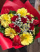 Il Bouquet Alba Fiorita presenta una combinazione artistica di rose, gerbere e tulipani, caratterizzato da tonalità vivaci di giallo e rosso. Questa selezione floreale non solo abbellisce l'ambiente, ma migliora anche l'umore, grazie ai colori stimolanti e freschi, rendendolo ideale per occasioni speciali o decorazioni quotidiane.