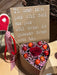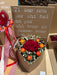 Flower box a cuore e banner con rose rosse e fiori misti La scatola si compone di rose rosse con un mix di fiori freschi.