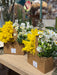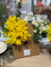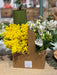 Un vassoio Take Away con 2 bicchieri ripieni di fiori e mimosa, un pensiero veramente inaspettato e insolito.